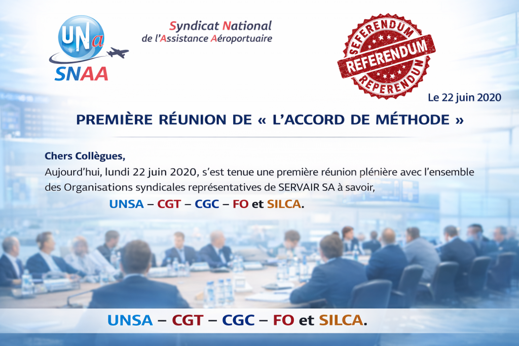 chers collègues, Aujourd’hui, lundi 22 juin 2020, s’est tenue une première réunion plénière avec l’ensemble des Organisations syndicales représentatives de Servair SA à savoir , UNSA-CGT-CGC-FO-SLICA.